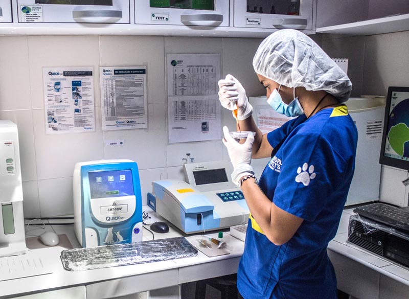 WORLD PETS  cuenta con equipos de alta calidad para procesar las muestras clínicas tomadas y con personal calificado  que interpreta y analiza los resultados para proporcionar una formulación médica y tratamiento adecuado para las mascotas.